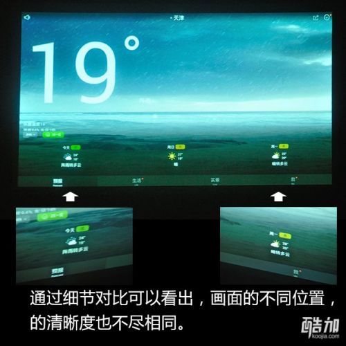 也许是我打开的方式不对,当画面投影一段时间之后,在同一屏的投影中,画面的右半部分清晰度到明显高于左半部分,这对于画面控来说,恐怕是难以接受的。